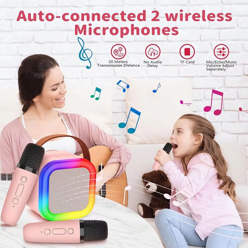 Portable Karaoke System and Bluetooth Micro Sound Box Speakers With 2 Wireless Microphones